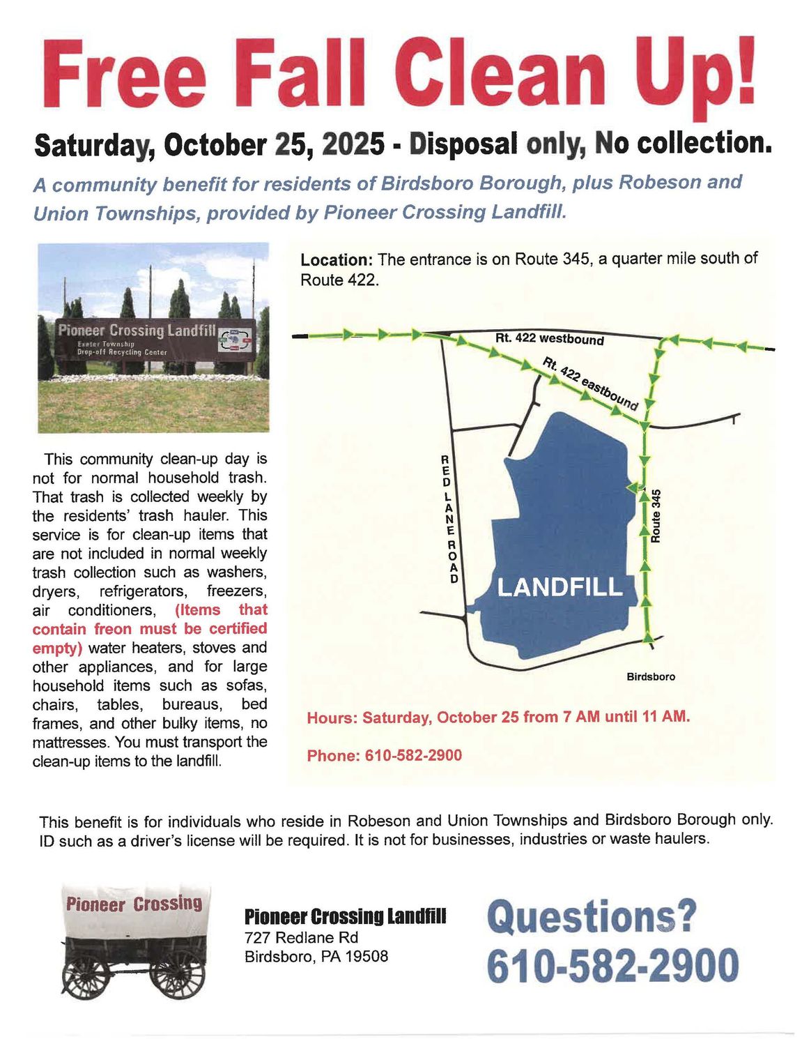 at the Robeson Township Municipal Building, 2689 Main St., Birdsboro, PA, 19508 Berks County.