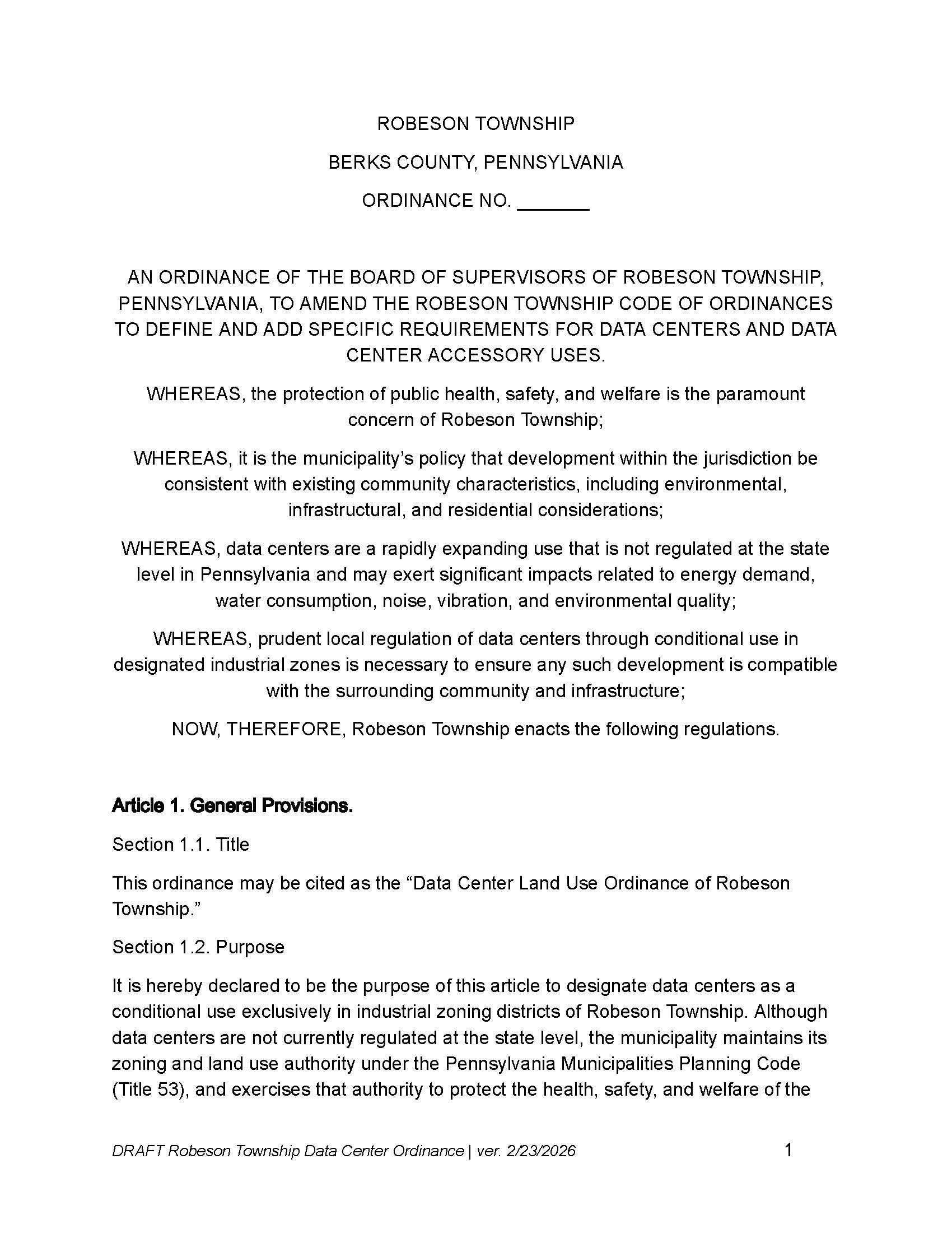 EAC Letter to BOS re Data Center Ordinance